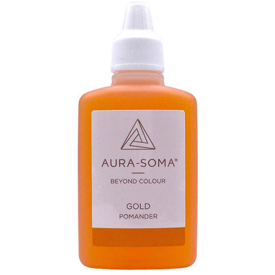 Fülle in uns finden, unsere Weisheit mit ihrem ganzen Potential einsetzen. Das Gold bezieht sich auf den Solarplexus, wo wir Ängstlichkeit und Furcht fühlen. Indem wie diese Farbe benutzen, befähigen wir uns zu akzeptieren, zu empfangen, zu verdauen und zu entspannen.